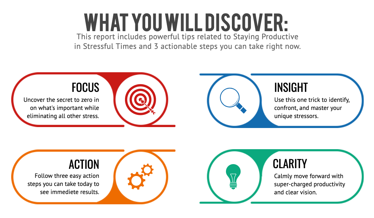 Staying productive can be a challenge at the best of times. Some of us have trouble even becoming productive in the first place. When you are stressed out or dealing with other problems in your life, it can almost feel impossible to get things done. If you have felt stressed out and your productivity has waned, then this short report, with actionable steps, is for you - all for free!